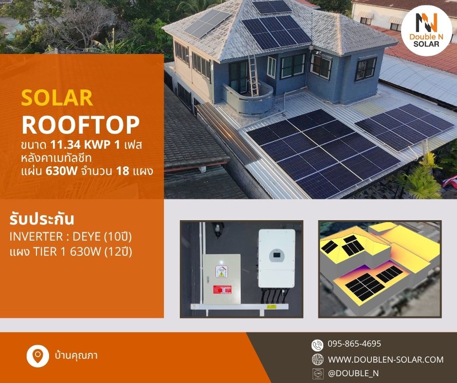แผงโซลาร์เซลล์ (PV Solar): เลือกใช้ JA Solar Mono Half-Cell 630W (18 แผง) แผงประสิทธิภาพสูงที่รับแสงได้ดีแม้ในวันที่แดดอ่อน